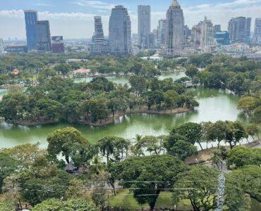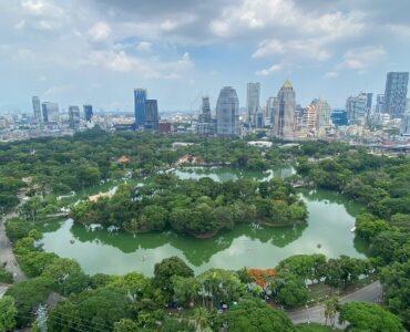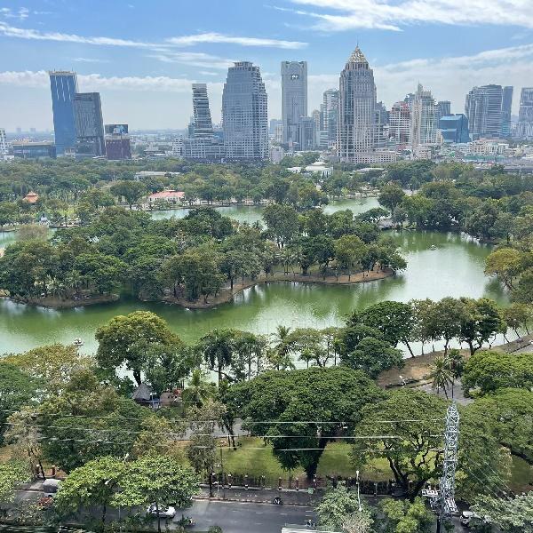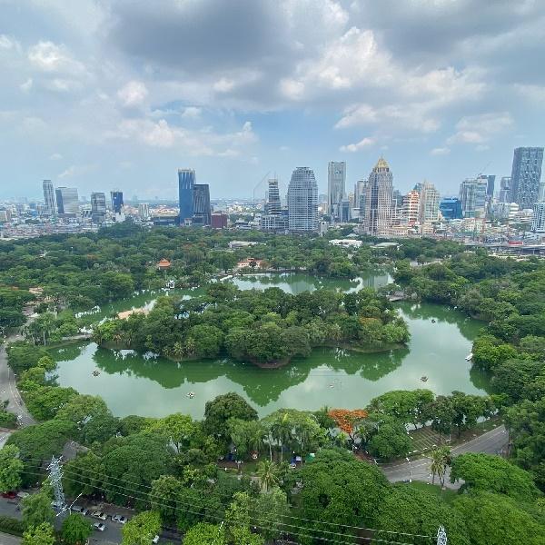 . Floor to ceiling windows offering panoramic views of the Royal Bangkok Sports Club and Lumpini Park