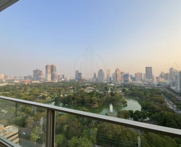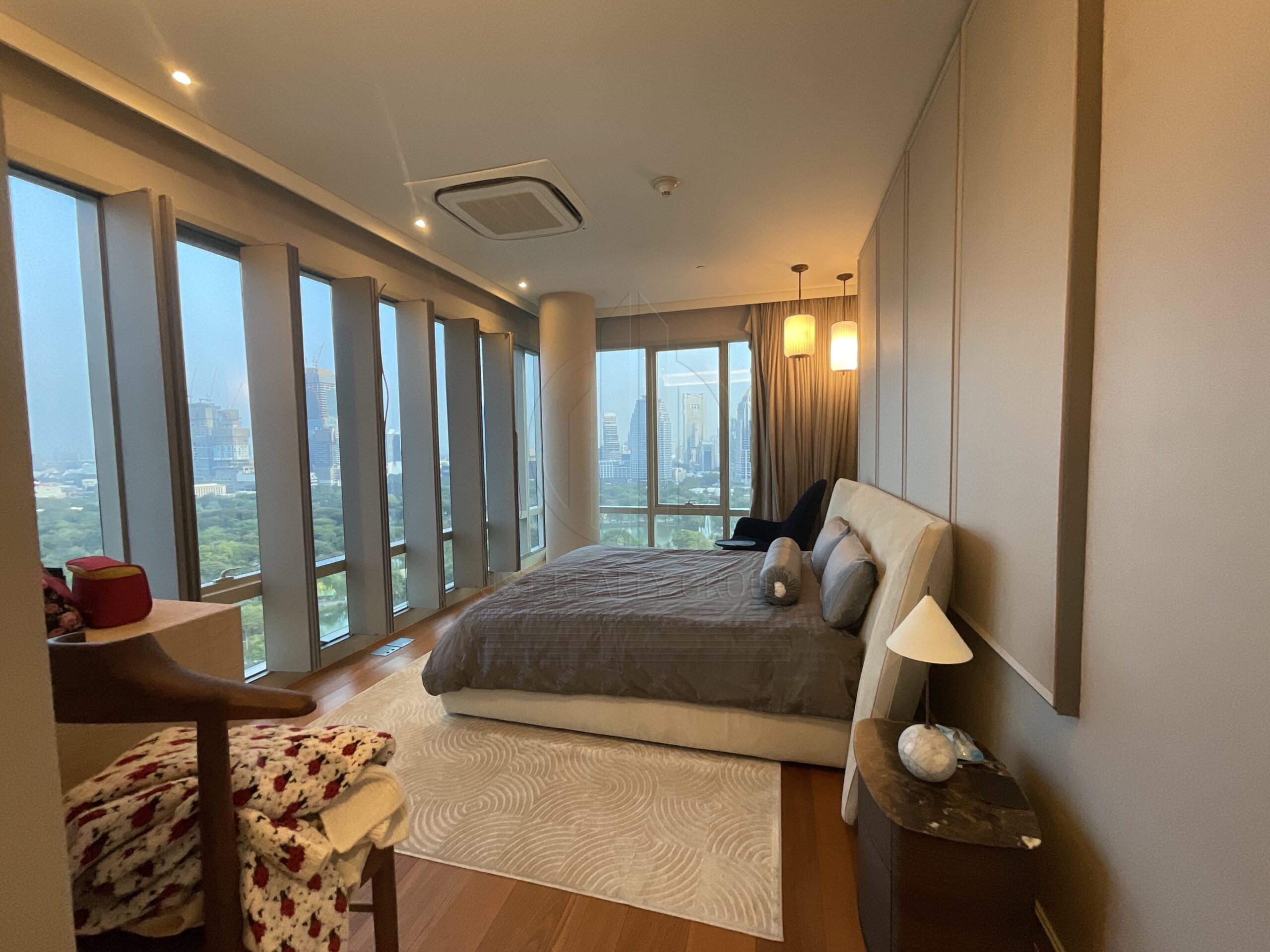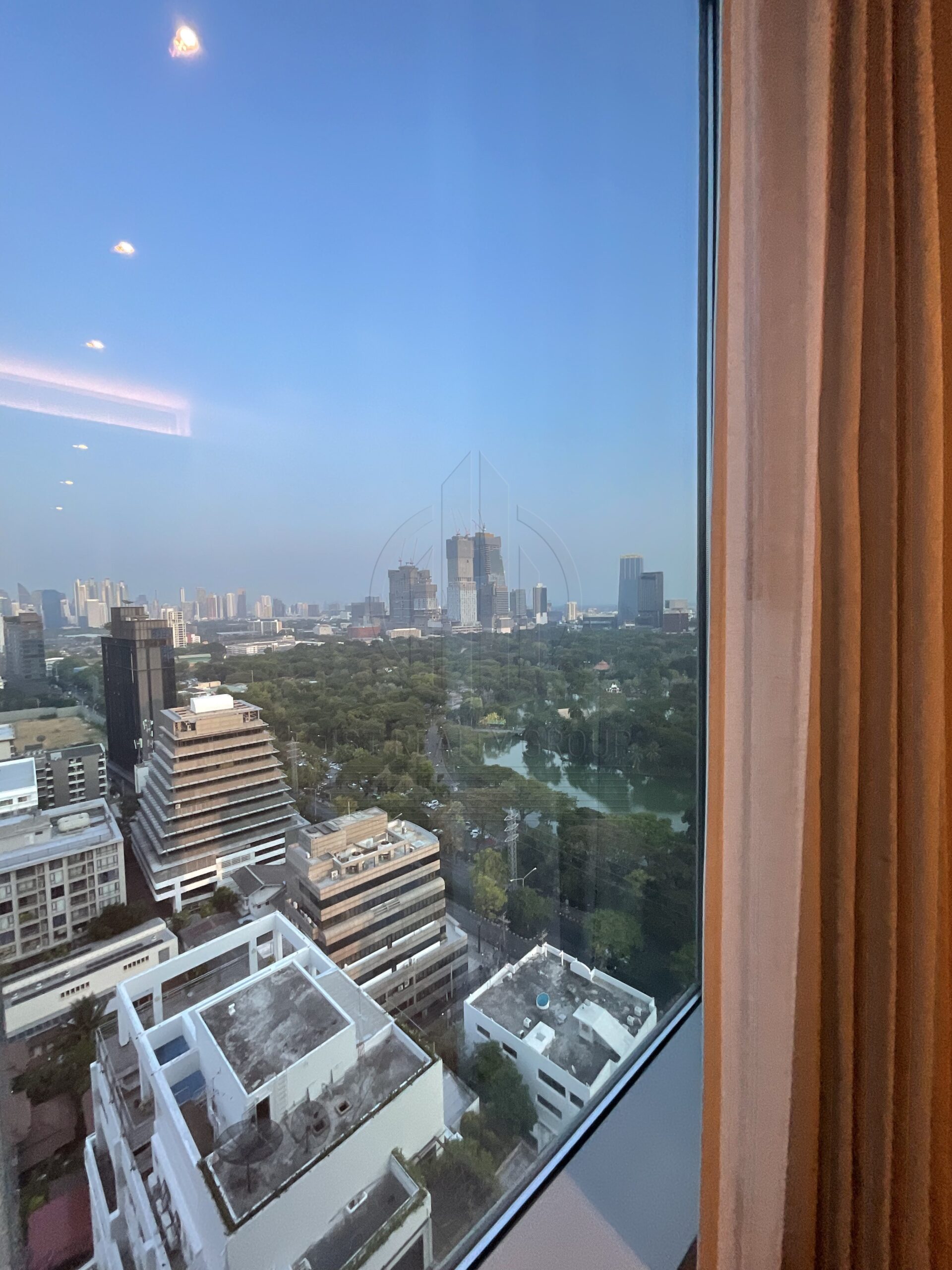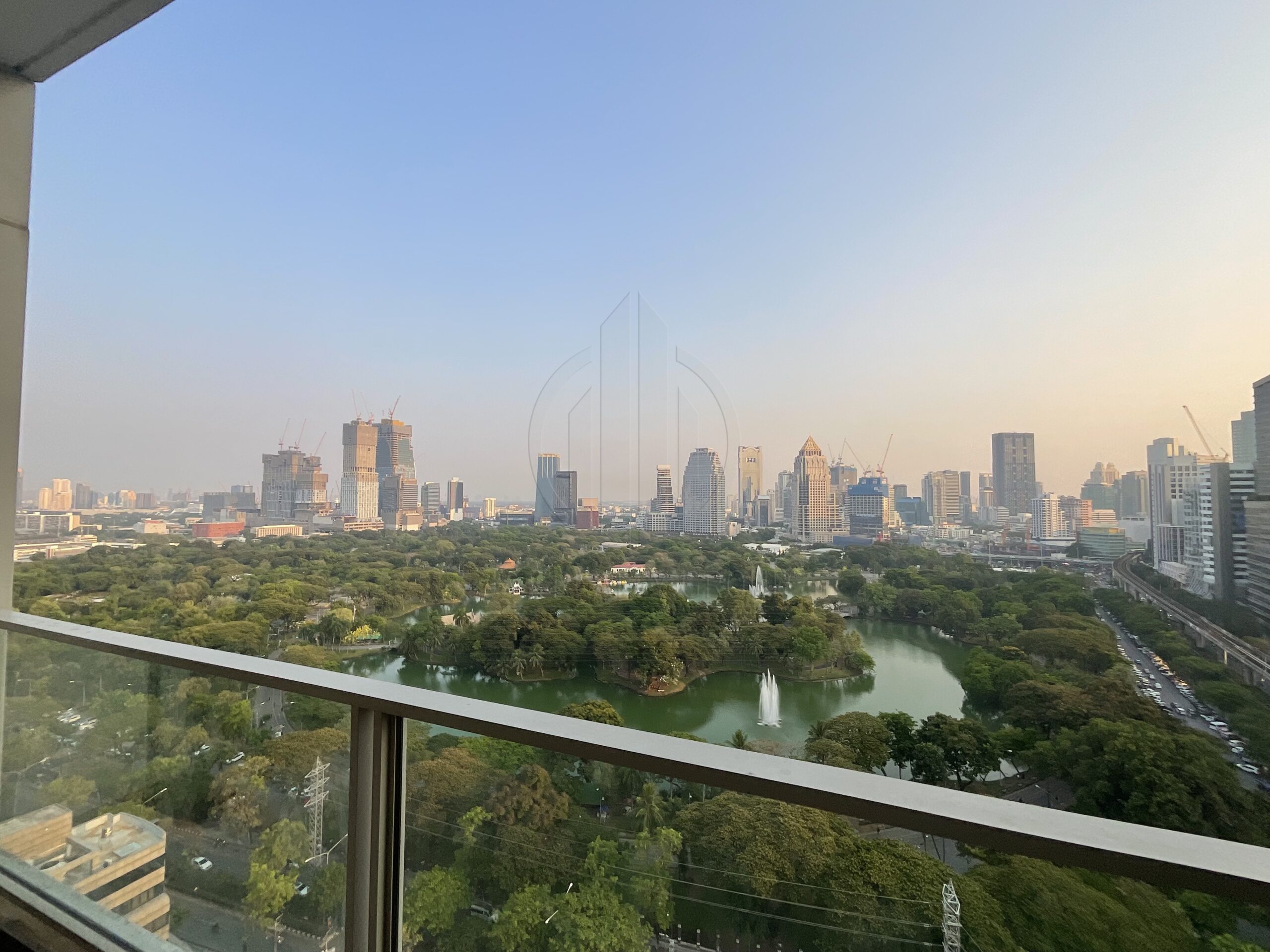. Floor to ceiling windows offering panoramic views of the Royal Bangkok Sports Club and Lumpini Park
