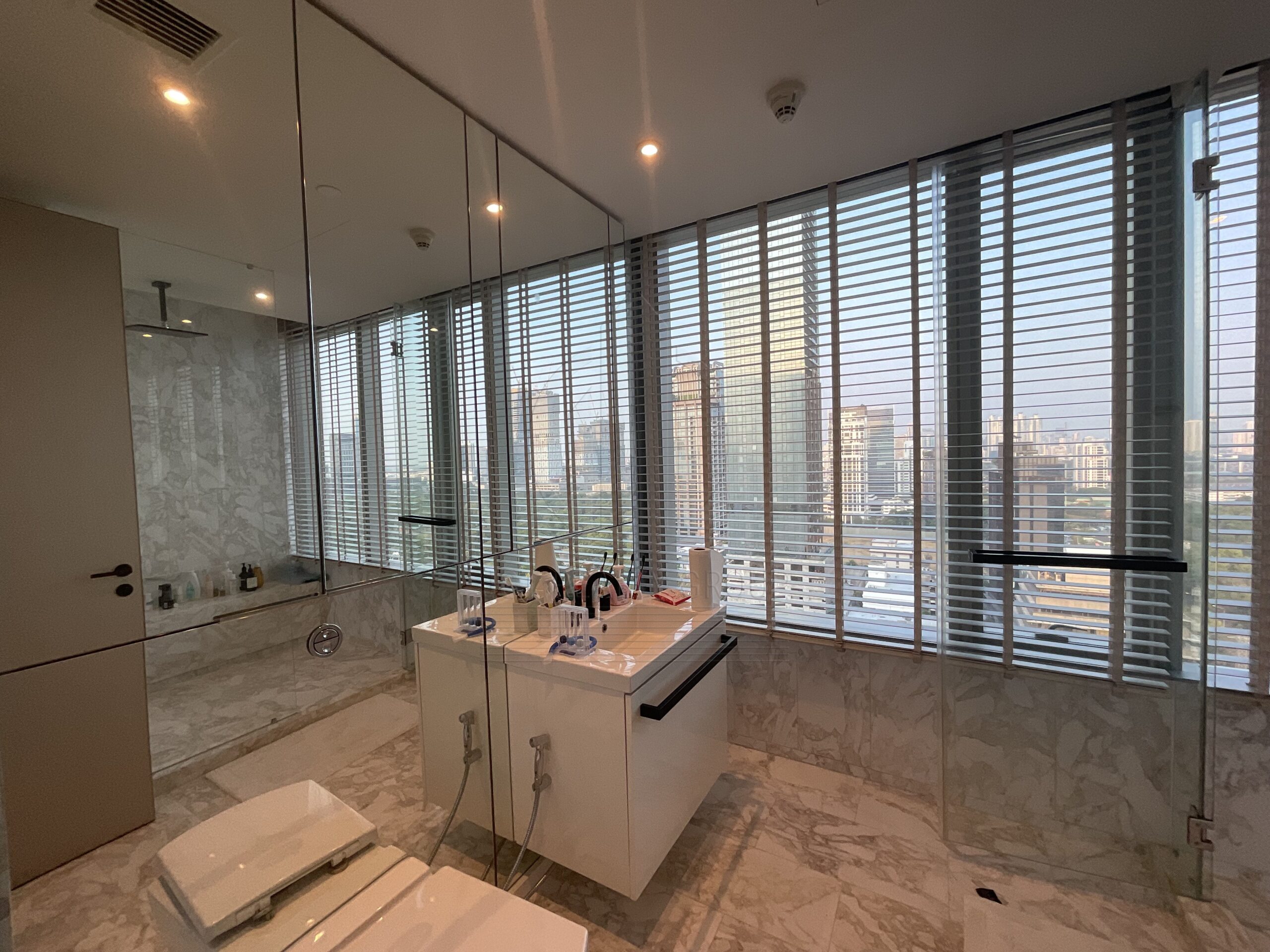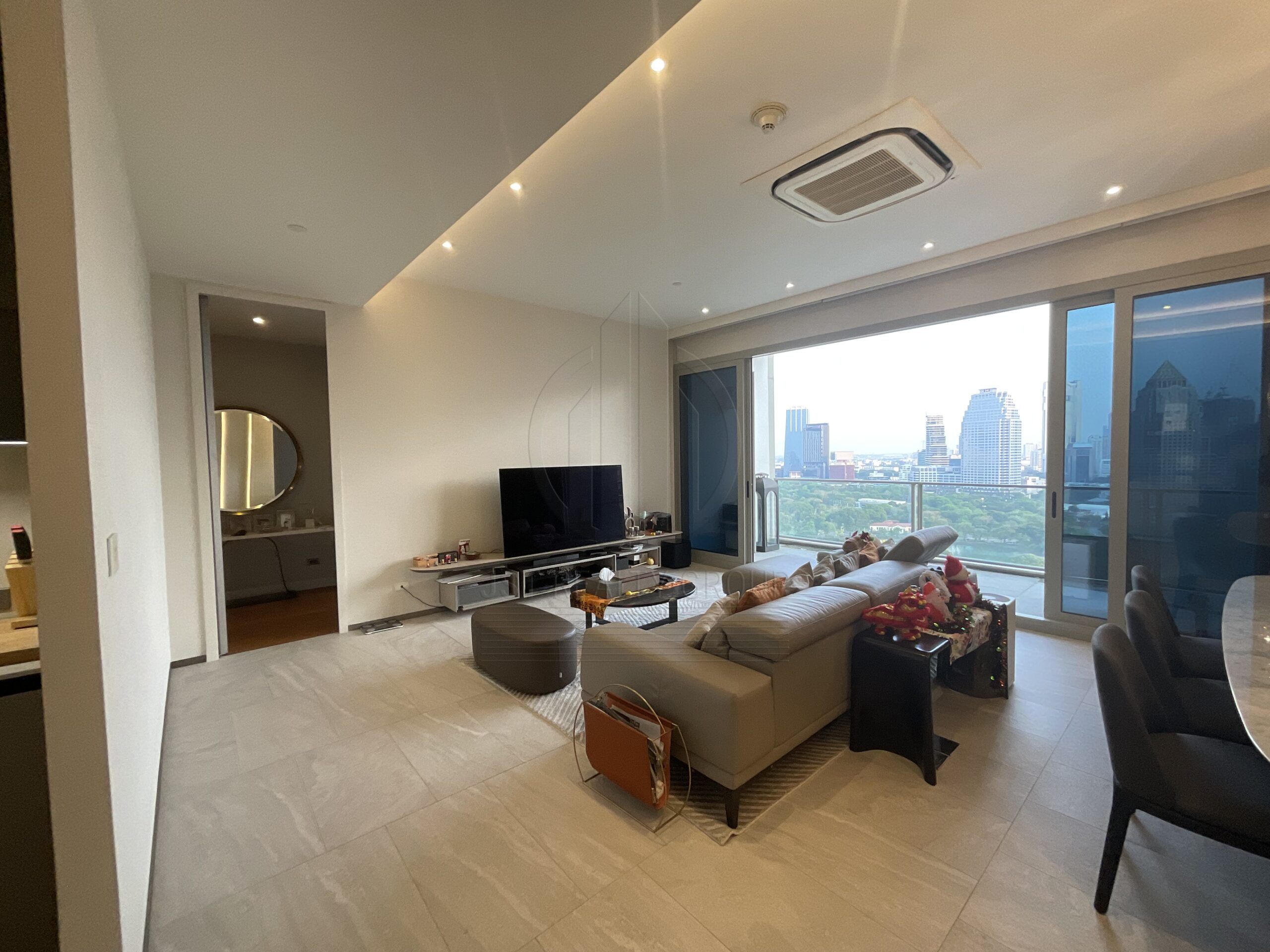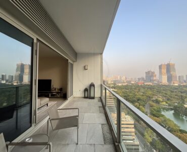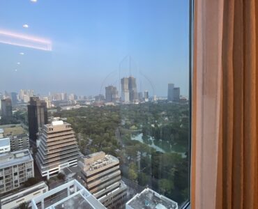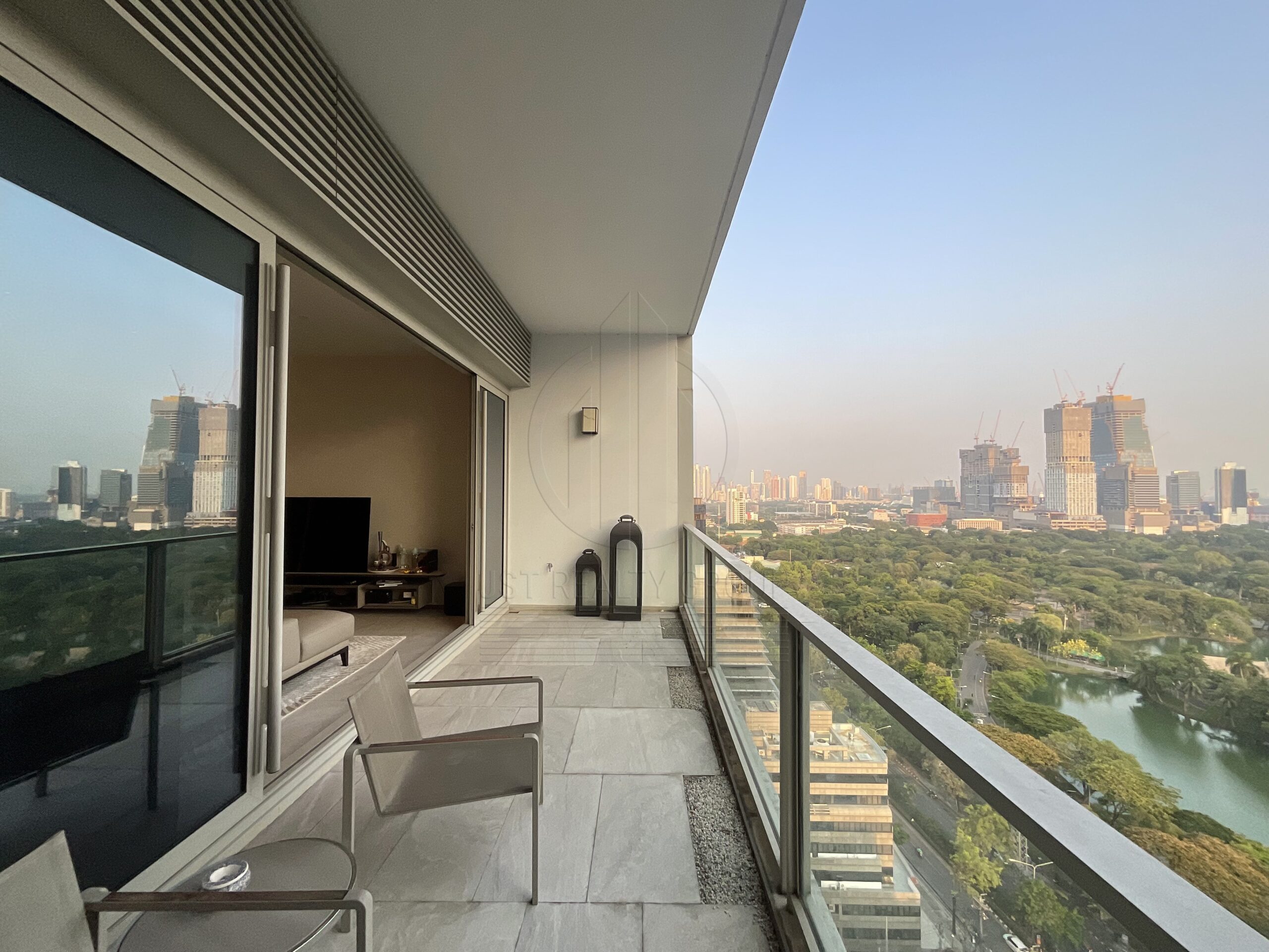 . Floor to ceiling windows offering panoramic views of the Royal Bangkok Sports Club and Lumpini Park