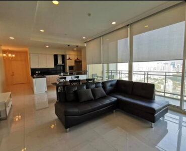 . This ultra-spacious unit is located on a high floor, offering breathtaking panoramic views of the Bangkok skyline and the lush greenery of the surrounding embassies.