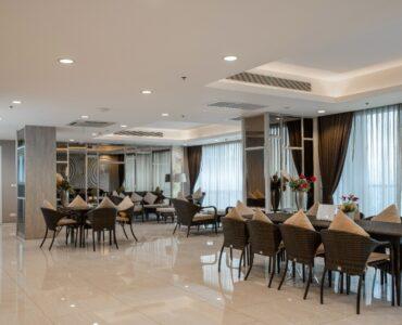 . Floor-to-ceiling windows allow for natural light and a refreshing breeze from the Chao Phraya River.
