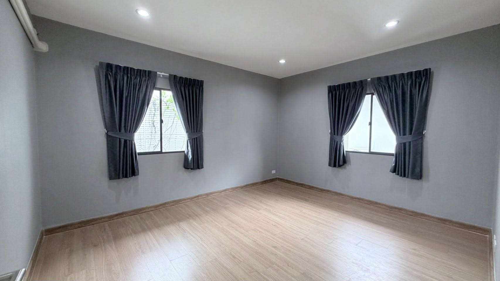 . Air conditioners and curtains throughout