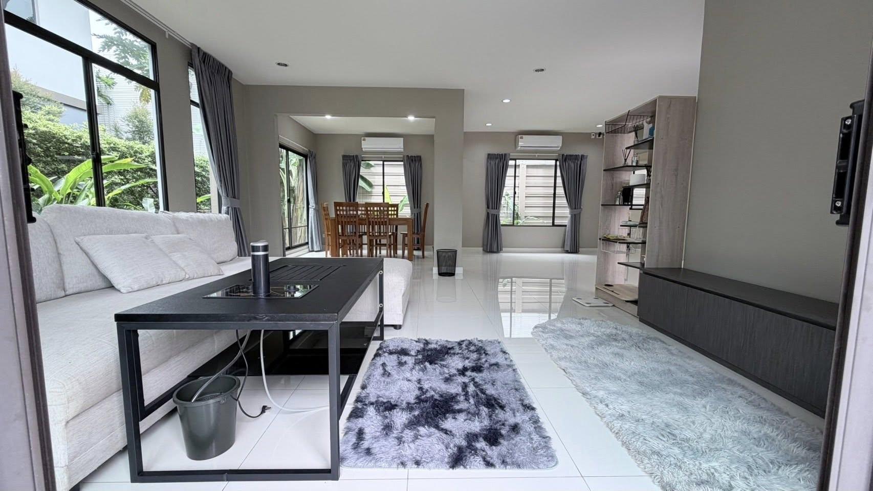 . บ้านเดี่ยว 2 ชั้นสุดหรูที่ออกแบบมาเพื่อการอยู่อาศัยระดับพรีเมียม ตัวบ้านหันหน้าไปทางทิศใต้รับลมธรรมชาติได้ดีเยี่ยม มาพร้อมเฟอร์นิเจอร์และเครื่องใช้ไฟฟ้าครบครันแบบจัดเต็ม พร้อมให้หิ้วกระเป๋าเข้าอยู่ได้ทันที ภายในมีห้องอเนกประสงค์ที่ปรับเปลี่ยนการใช้งานได้หลากหลาย พร้อมห้องครัวฟังก์ชันครบ พื้นที่ใช้สอยกว้างขวาง ตอบโจทย์ครอบครัวยุคใหม่ที่ต้องการความสะดวกสบาย