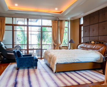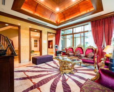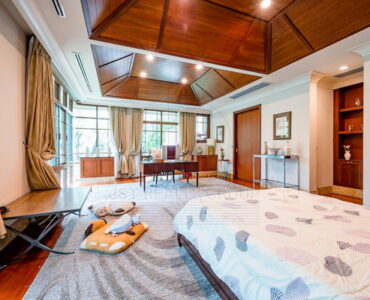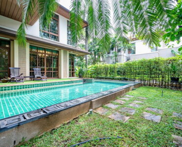 House Authentic Golden Teak Floor,New Zealand Fleece Carpet , Marble & Granite Floor and Wall Import from Italy– 5 Bed 6 Bath with Large Walk In Closet– Luxury Louis Style Sofa set and Dining table set(Hand- made)– Dining Room– Living Room– 2 Kitchens (Thai&Western)– 3 Storage and 1 prayer room– 6 Car Parking.– Big Bath Tub with Water Fall Curtain– Private Swimming Pool with Jacuzzi– Smart Home System– New Pump & New Filter of Pool– Water Fillter with Reverse Osmosis– Sprinkle around House and Garden– 1 Maid room and 1 bathroom for maidHigh security , Wide Street ,Only One and The Best in VillaNearby place- 6 Stars Hospital and World Class Department Stores- Best Restaurant of BKK, 3 Min. to BTS – Top Ten International schools