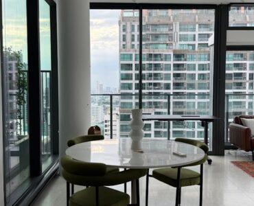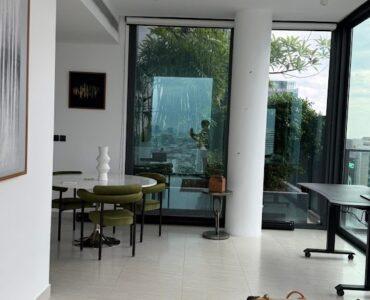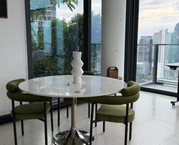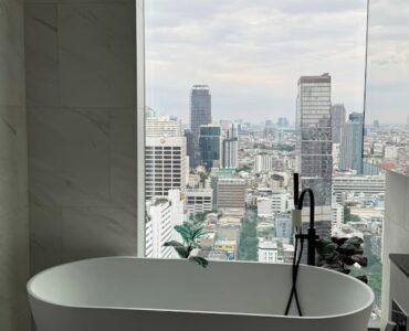. Tait 12 is an award-winning luxury condominium boasting a distinctive sloping architectural design that stands as a landmark in Sathon.