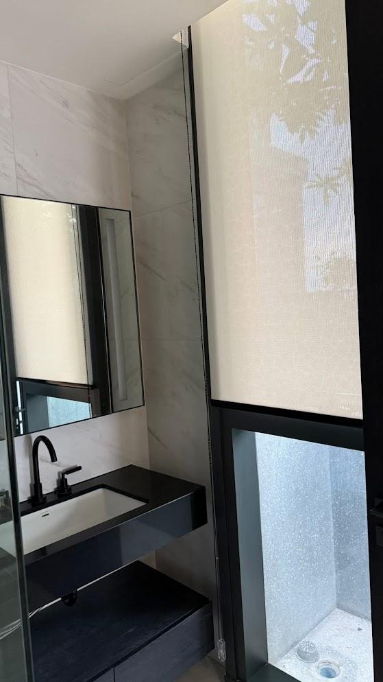 . ผนังกระจกบานใหญ่จากพื้นจรดเพดานเปิดรับทัศนียภาพกว้างไกลและแสงธรรมชาติ ช่วยให้ห้องมุมดูโปร่งสบายและโอ่โถง