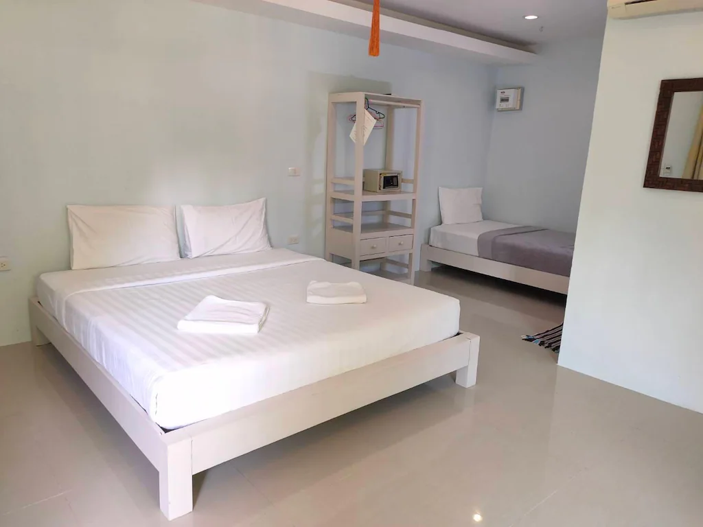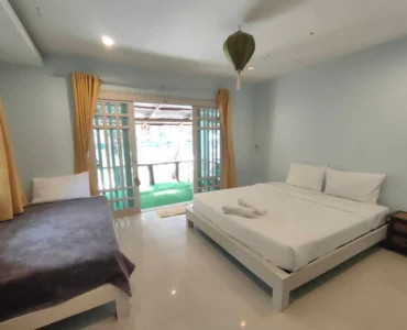 . ห้องพักสำหรับสามท่านพร้อมวิวสวน ห้องพักขนาดกว้างขวางเหมาะสำหรับการเข้าพักแบบกลุ่มเพื่อน