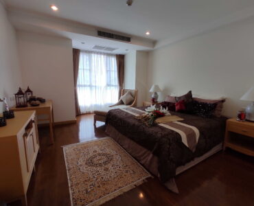 * **Unit Highlights:** This expansive 215-square-meter residence offers a superior standard of luxury living in the prestigious Sukhumvit 22 area. The unit features a grand open-plan living and dining space, perfect for large families and hosting guests. Floor-to-ceiling windows provide panoramic city views and fill the home with natural light. Each bedroom is generously sized with high-quality en-suite bathrooms. The property is fully furnished with elegant contemporary decor and includes a large, fully-equipped kitchen and separate laundry area.