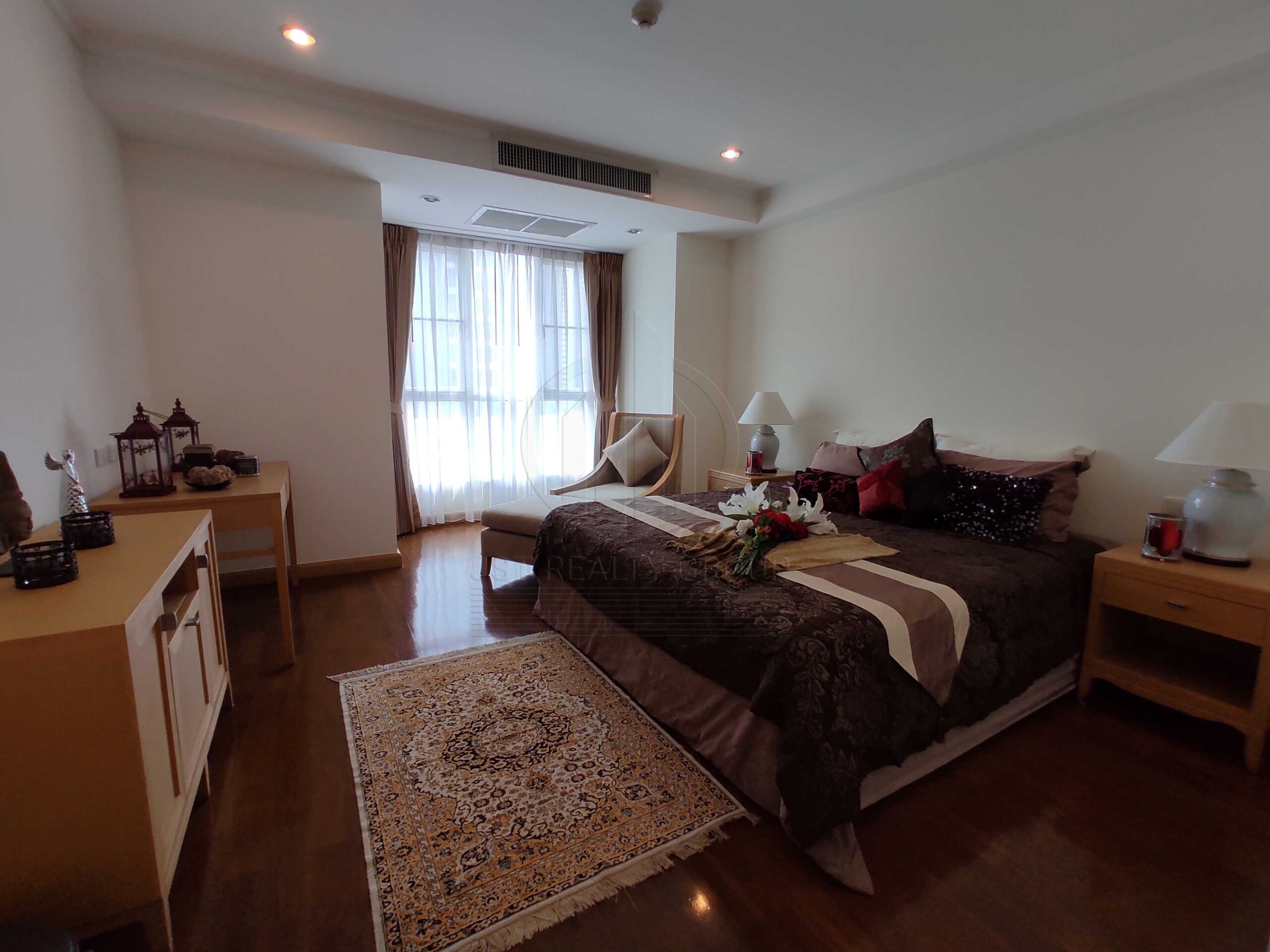* **เสน่ห์และจุดเด่นของห้อง:** ที่พักอาศัยระดับหรูขนาดกว้างขวางถึง 215 ตารางเมตร มอบมาตรฐานการใช้ชีวิตที่เหนือระดับในย่านสุขุมวิท 22 ตัวห้องโดดเด่นด้วยพื้นที่นั่งเล่นและรับประทานอาหารแบบเปิดโล่งขนาดใหญ่ เหมาะสำหรับครอบครัวใหญ่และการรับรองแขก หน้าต่างสูงจากพื้นจรดเพดานมอบคุณทัศนียภาพเมืองแบบพาโนรามาและเปิดรับแสงธรรมชาติอย่างเต็มที่ ห้องนอนทุกห้องมีขนาดกว้างขวางพร้อมห้องน้ำในตัวคุณภาพสูง ตกแต่งครบครันด้วยเฟอร์นิเจอร์ร่วมสมัยที่หรูหรา พร้อมห้องครัวขนาดใหญ่ที่ติดตั้งอุปกรณ์ครบชุดและโซนซักล้างแยกเป็นสัดส่วน