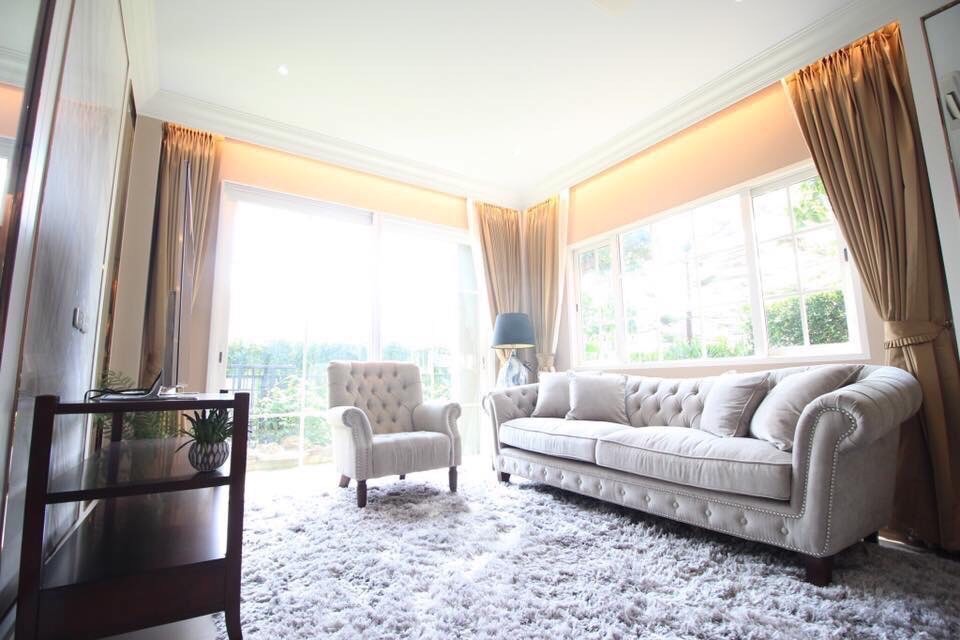 บ้านทำเลดี อยู่หน้าสโมสร ตกแต่งสวยพร้อมเฟอร์นิเจอร์หรู พร้อมสวนบ่อปลาคราฟ