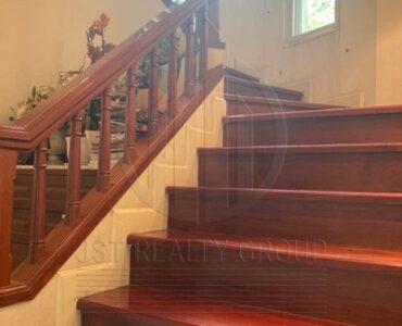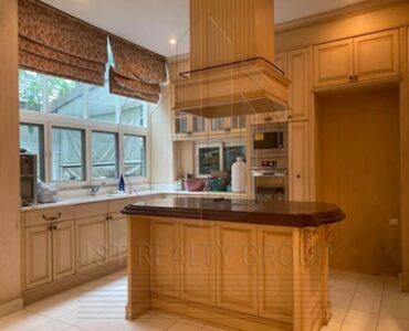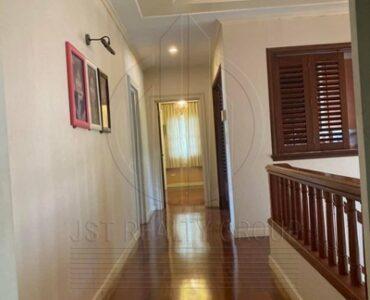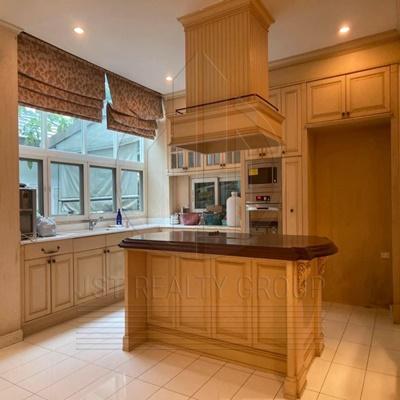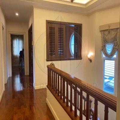 . เสน่ห์ของบ้านหลังนี้คือการตั้งอยู่ในตำแหน่งที่ดีที่สุดใจกลางหมู่บ้าน โดยตัวที่ดินติดริมน้ำถึงสองด้านและอยู่ติดกับสนามเด็กเล่น มอบทัศนียภาพที่สวยงามและบรรยากาศที่เงียบสงบ ฟังก์ชันภายในบ้านประกอบด้วย 4 ห้องนอน 5 ห้องน้ำ พร้อมการต่อเติมเรือนรับรองแยกส่วนอีกหนึ่งหลังเพื่อใช้เป็นห้องนั่งเล่นและห้องออกกำลังกายส่วนตัว ภายนอกมีการสร้างบ่อปลาและศาลานั่งเล่นเพิ่มเติมเพื่อการพักผ่อนอย่างแท้จริง อีกหนึ่งจุดเด่นที่หาได้ยากคือพื้นที่จอดรถภายในบ้านที่สามารถรองรับรถได้มากถึง 8 คัน เหมาะสำหรับครอบครัวใหญ่ที่ต้องการความสะดวกสบายและความหรูหราในทำเลศักยภาพ