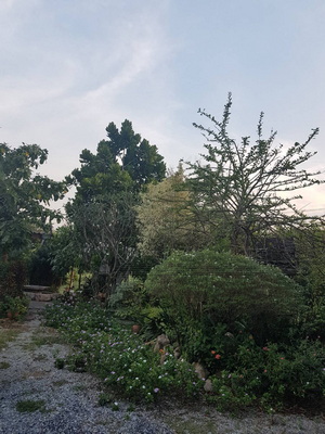 ภายในที่จะมีต้นไม้ทั้งกินได้ เช่น มะม่วง มะพร้าว ชมพู่ ฝรั่ง มะยม มะยงชิด มะละกอ มะกอก มะนาว พืชผักสวนครัว และไม้ดอกไม้ประดับ