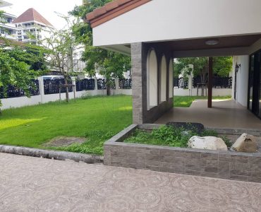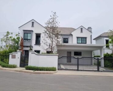 . The charm of this property lies in its rich history and authentic character; originally constructed in 1918 and extensively renovated in 2016, the house perfectly blends timeless heritage with modern functionality. Spanning a land area of 120 square wah with approximately 250 square meters of usable space, the house features a distinct L-shaped floor plan. The ground floor utilizes a cool, tiled concrete base, while the upper floor showcases beautiful traditional wood flooring. The property includes a garden, parking for 2-3 cars, and is offered as an empty unit, allowing for versatile decoration to suit your needs. Its architecture is a stunning fusion of European medieval art and Asian bungalow styles, featuring intricate geometric and club-patterned wood carvings, ventilation holes, and a distinct mansard-style roof tiled with classic cement kite-shaped shingles.