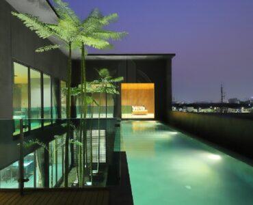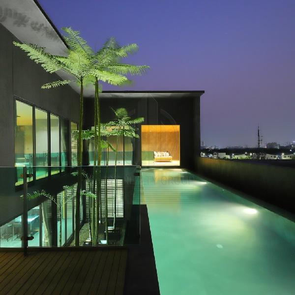 Infinity edge type, 15 m long, on the 4th floor with elevator, sky garden and waterfall