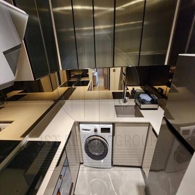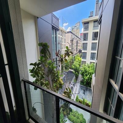 . The charm of this unit is its rare “Sky Courtyard” feature, being one of only two rooms in the entire project that offers the most stunning panoramic view of the central swimming pool. Located on the 5th floor of Building B, the unit consists of 2 bedrooms, 2 bathrooms, a stylish living room, and a modern kitchen. The interior is fully furnished with premium-grade furniture from the renowned brand “Chanintr,” and equipped with high-end appliances and sanitary ware from Gorenje and Villeroy & Boch. This unit perfectly balances high-fashion aesthetics with functional luxury in the heart of the Thong Lo-Ekkamai district.
