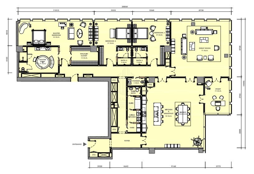 The average sale price at The Ritz – Carlton Residences at MahaNakhon is ฿404,762 per sqm. This is 156.0% above current average sale price in Bang Rak district (฿158,133 per sqm) and 295.4% above the average price in Bangkok (฿102,373 per sqm).